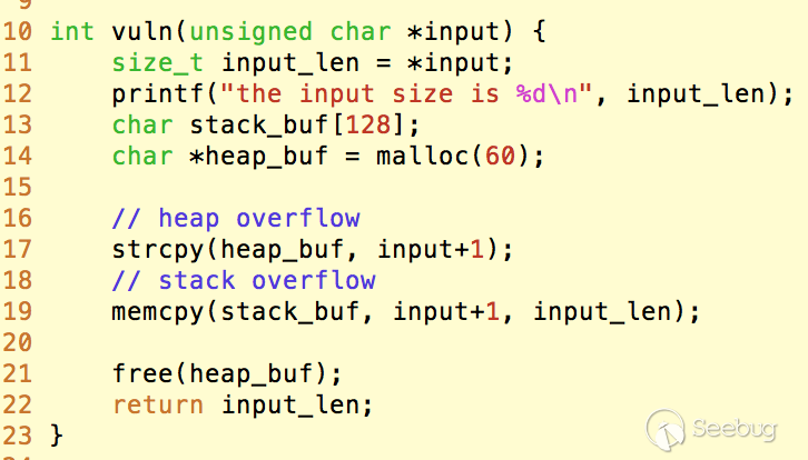 vuln()的函數,存在棧溢出和堆溢出:
