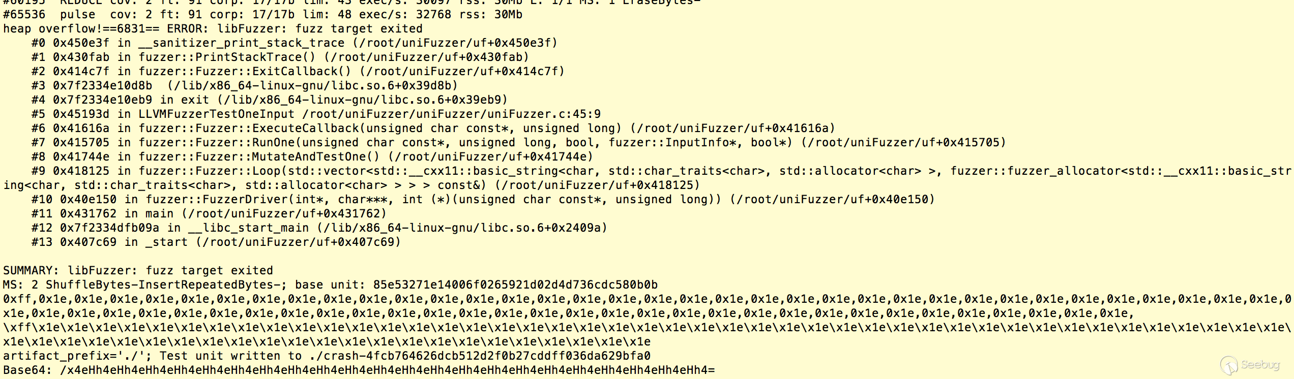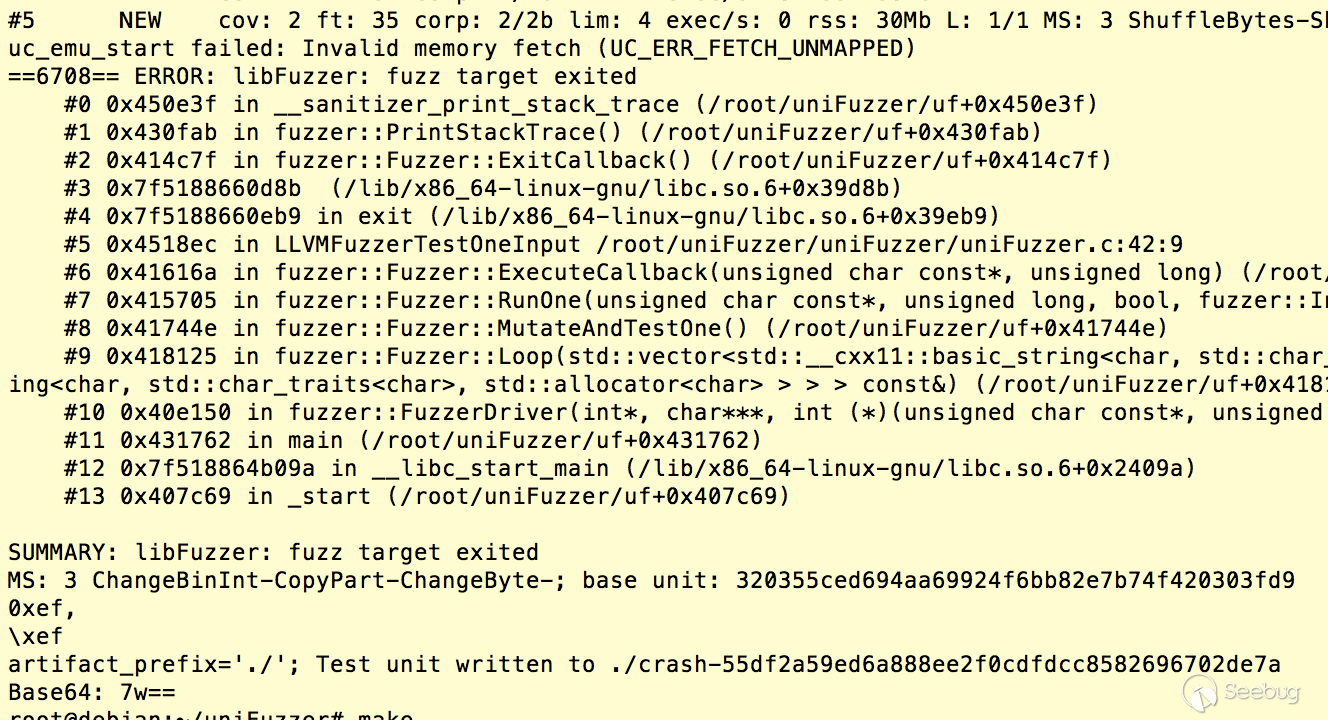 - fuzzing:將Unicorn的模擬執行作為目標函數,開始LibFuzzer的fuzzing