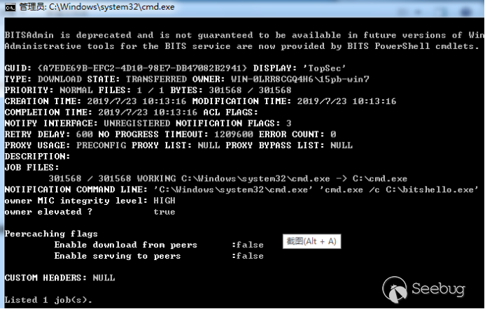 | BITS 的靈活應用 | 通過bitsadmin命令加入傳輸任務,利用BITS的特性,實現每次重啟都會執行自己的程序。 | 用戶 | https://attack.mitre.org/techniques/T1197/ |