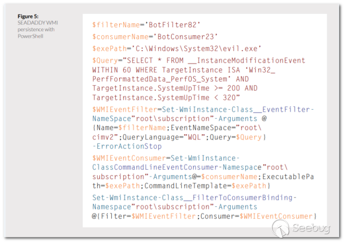 Windows管理規范(Windows Management Instrumentation,縮寫WMI)由一系列對Windows Driver Model的擴展組成,它通過儀器組件提供信息和通知,提供了一個操作系統的接口。從攻擊者或防御者的角度來看,WMI最強大的功能之一是WMI能夠響應WMI事件。 除了少數例外,WMI事件可用于響應幾乎任何操作系統事件。 例如,WMI事件可用于在進程創建時觸發事件。 然后,可以將此機制用作在任何Windows操作系統上執行命令行指令。 有兩類WMI事件,在單個進程的上下文中本地運行的事件和永久WMI事件過濾。 本地事件持續主機進程的生命周期,而永久WMI事件存儲在WMI存儲庫中,以SYSTEM身份運行,并在重新引導后保持不變。據各安全廠商披露,有不少APT組織使用這種技術來維持后門持久性,如何防御WMI攻擊值得安全研究人員進行了解。