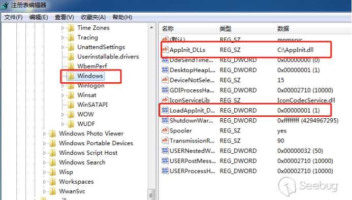 User32.dll被加載到進程時,會獲取AppInit_DLLs注冊表項,若有值,則調用LoadLibrary() API加載用戶DLL。只會影響加載了user32.dll的進程。