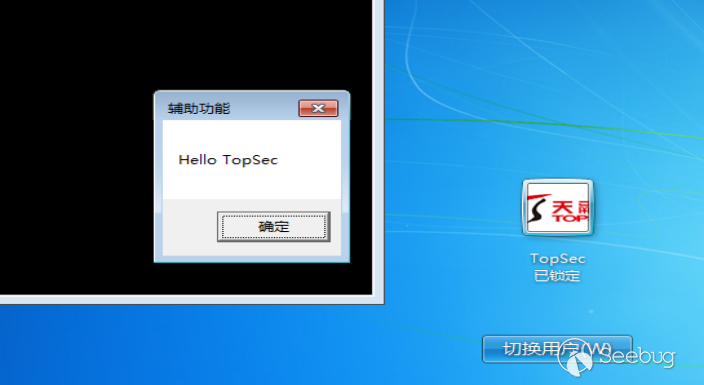 MessageBoxA(0,"hello topsec","AppCert",0);