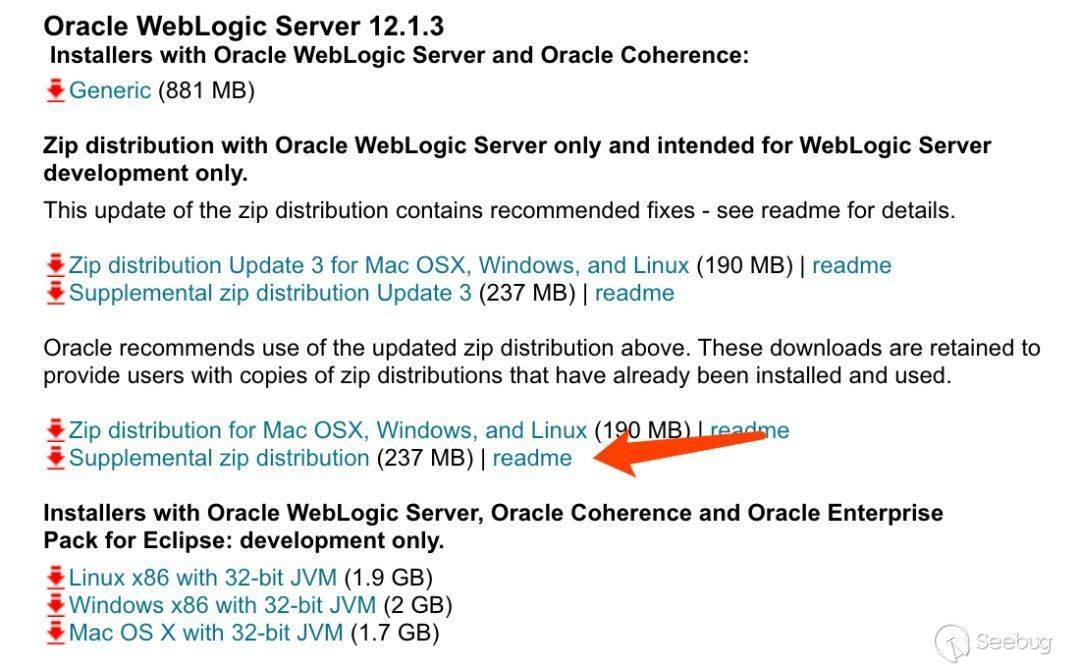 根據Oracle官方下載頁面https://www.oracle.com/technetwork/middleware/weblogic/downloads/wls-for-dev-1703574.html(從下向上看):