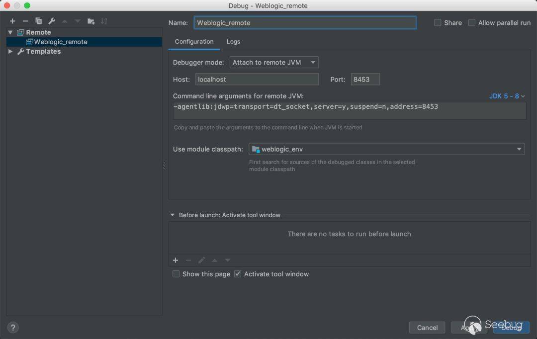 若要遠程調試WebLogic,需要修改當前WebLogic Server域目錄下bin/setDomainEnv.sh文件,添加如下配置: