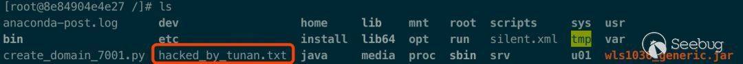 執行后去目標系統根目錄下,可以看到hacked_by_tunan.txt這個文件被創建成功,漏洞觸發成功。