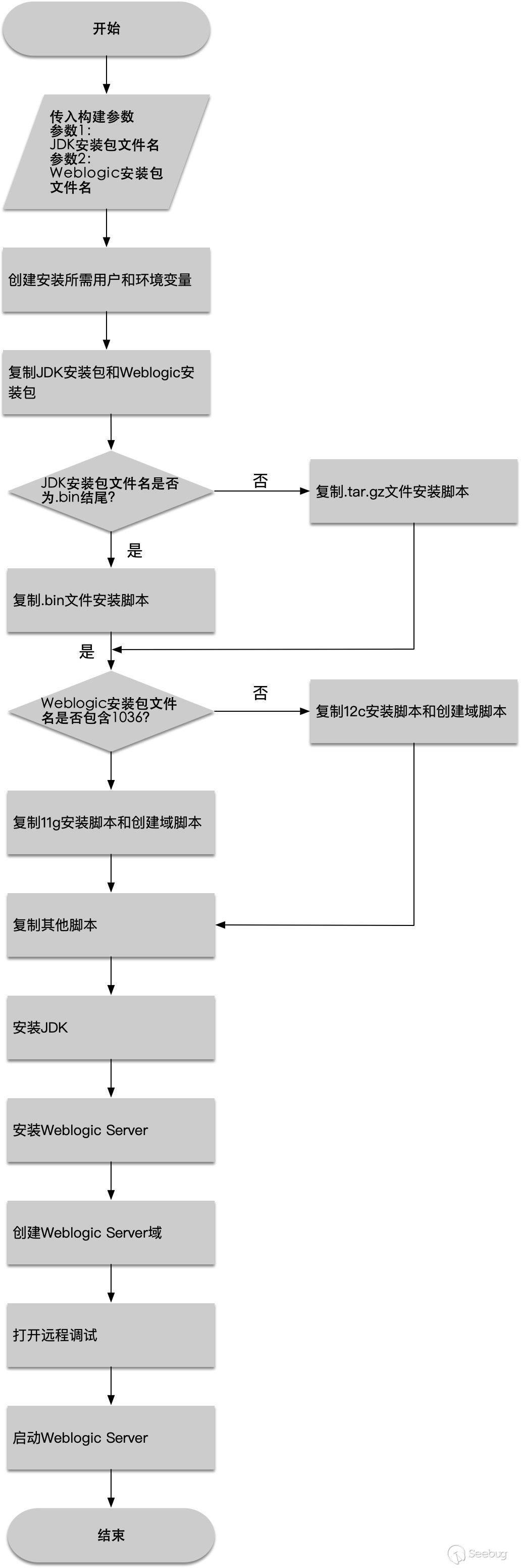 前面說到,WebLogic環境搭建過程很繁瑣,很多時候需要測試各種WebLogic版本和各種JDK版本的排列組合,因此我在這次研究的過程中寫了一個腳本級別的WebLogic環境搭建工具。這一小節我會詳細的說一下工具的構建思路和使用方法,也歡迎大家繼續完善這個工具,節省大家搭建環境的時間。工具地址:https://github.com/QAX-A-Team/WeblogicEnvironment