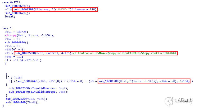該漏洞在WebAccess Node 8.4中得到修復,如圖9所示(case 0x2711為補丁前的分支代碼,case 1為補丁后的分支代碼) ,修復后的IOCTL增加了sub_100022D0函數對用戶的輸入內容進行檢查。具體的檢查方式是同白名單進行比較來判斷參數是否合法。