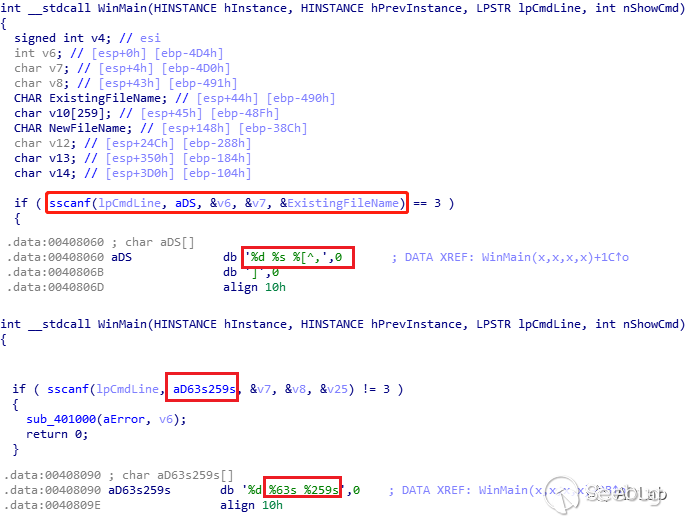 CVE-2019-6550在最新版本的Advantech WebAccess Node中也得到修復,補丁方式大致相同。以圖20所示的ZDI-19-330為例(上部分為補丁前代碼,下部分為補丁后代碼),修復方式為在sscanf的格式化輸出符設置了最大字符長度來防止sscanf函數棧溢出的產生。