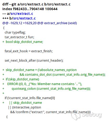 然后筆者繼續深入,通過tar官網extract.c文件更新列表對比,從源代碼分析tar的安全檢測行為。