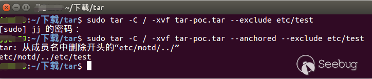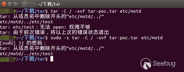 攻擊者利用該漏洞,構造一個特殊的tar包。當受害者使用tar命令解壓時,受害者指定的目標路徑可被繞過,tar包內的文件與目錄就被解壓到攻擊者指定的位置。
