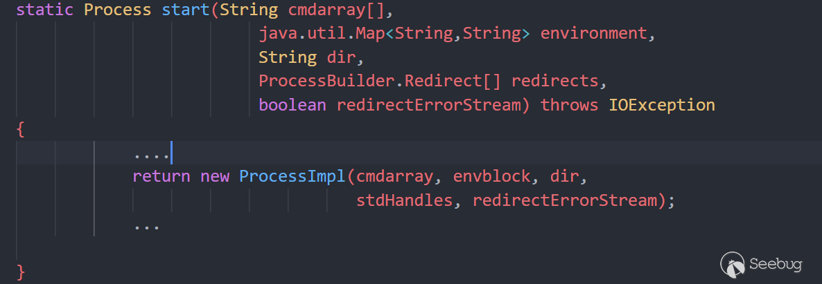 這個類主要是用來檢測采用ProcessBuilder來執行系統命令的惡意請求,在最后調用ProcessBuilder.start()時,惡意系統命令會傳遞到ProcessImpl或者UNIXProcess的構造函數中