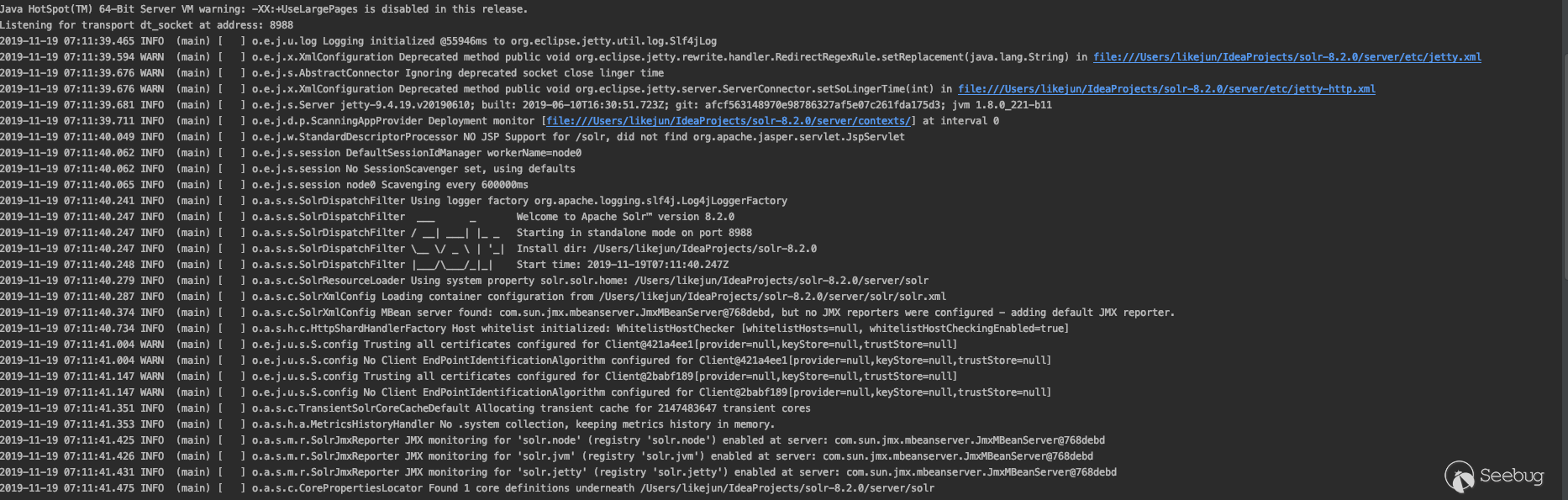 Apache Solr就會默認在本地的8983端口啟動服務,