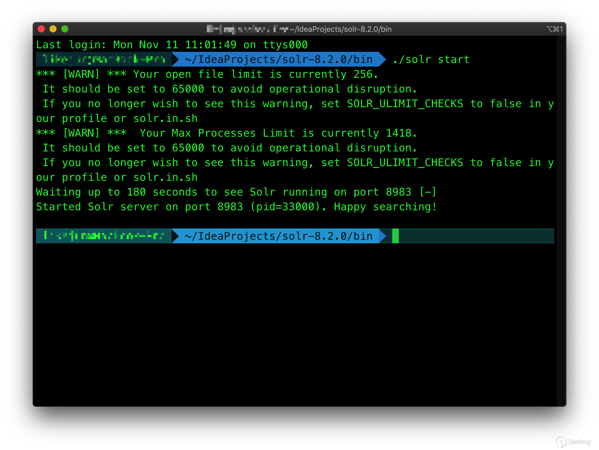 我們通過命令行終端進入bin目錄然后輸入“./solr start”命令!