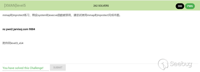Level5給出的限制的意思是使用mmap分配一塊內存,然后使用mprotect改變內存屬性為可執行最終達到任意代碼執行的目的。由此可以想到的思路是: