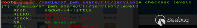 首先查看一下題目的保護措施(如下圖所示),可以看到是一個只開啟了NX的64位linux程序。