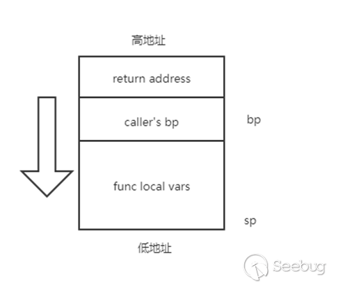 這樣call func后棧空間的布局大致是