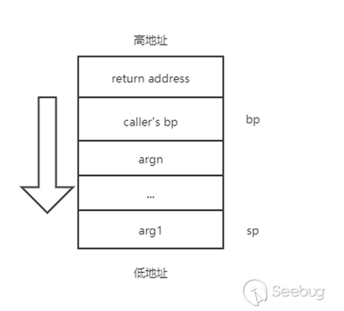 1.開辟棧幀(函數棧空間)。棧的生長方式是從高地址向低地址生長,開辟棧幀一般的匯編指令(沒有經過inline hook優化的)是push bp(當前棧基址壓棧)、mov bp,sp(bp寄存器保存棧頂sp寄存器值)、sub sp,xx(開辟xx大小的棧空間)