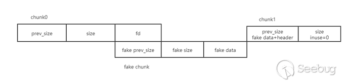 構造完fakechunk還需要修改下chunk1的prevsize和size的數據,