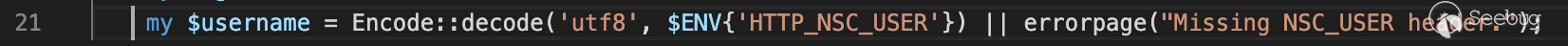這個username參數存儲的是我們客戶端傳遞來的 請求頭中的“NSC_USER”的值。