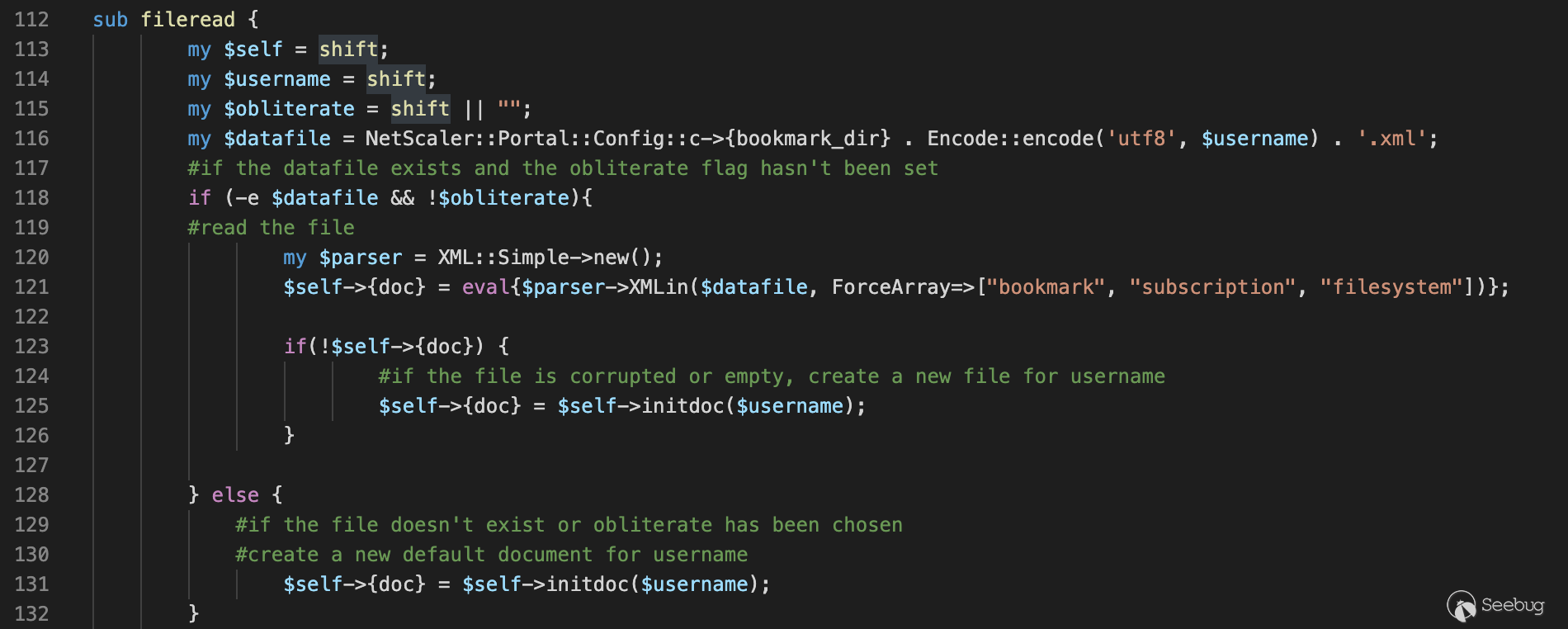 可以看到在第61行代碼調用了 fileread函數并將username變量作為參數傳入