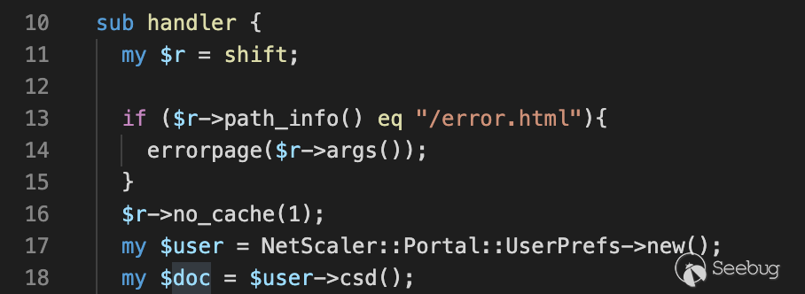 后綴為.pm的文件 即為Perl Module,也就是 Perl 模塊。在這里我們看到了處理請求/vpns/portal的默認木塊 Handler.pm