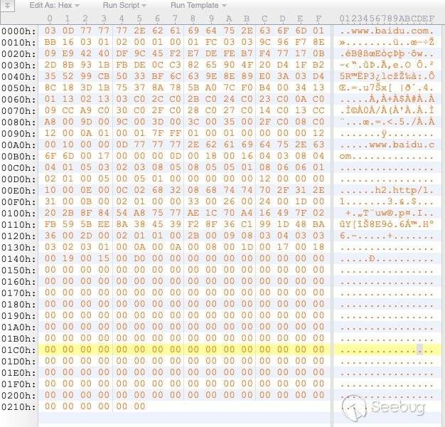 發包的明文是: 03 + 0B + "a.baidu.com" + port(80)