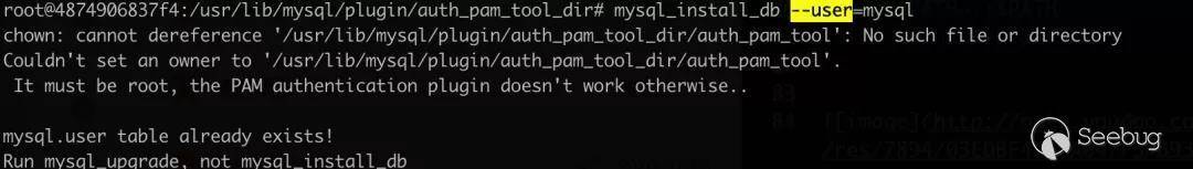 切換回root,在root權限下運行mysql_install_db腳本(觸發修改chmod命令)