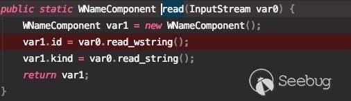 在WNameHelper.read()主要負責提取IOR中的信息(id、kind)用于之后注冊到orb的流程中。