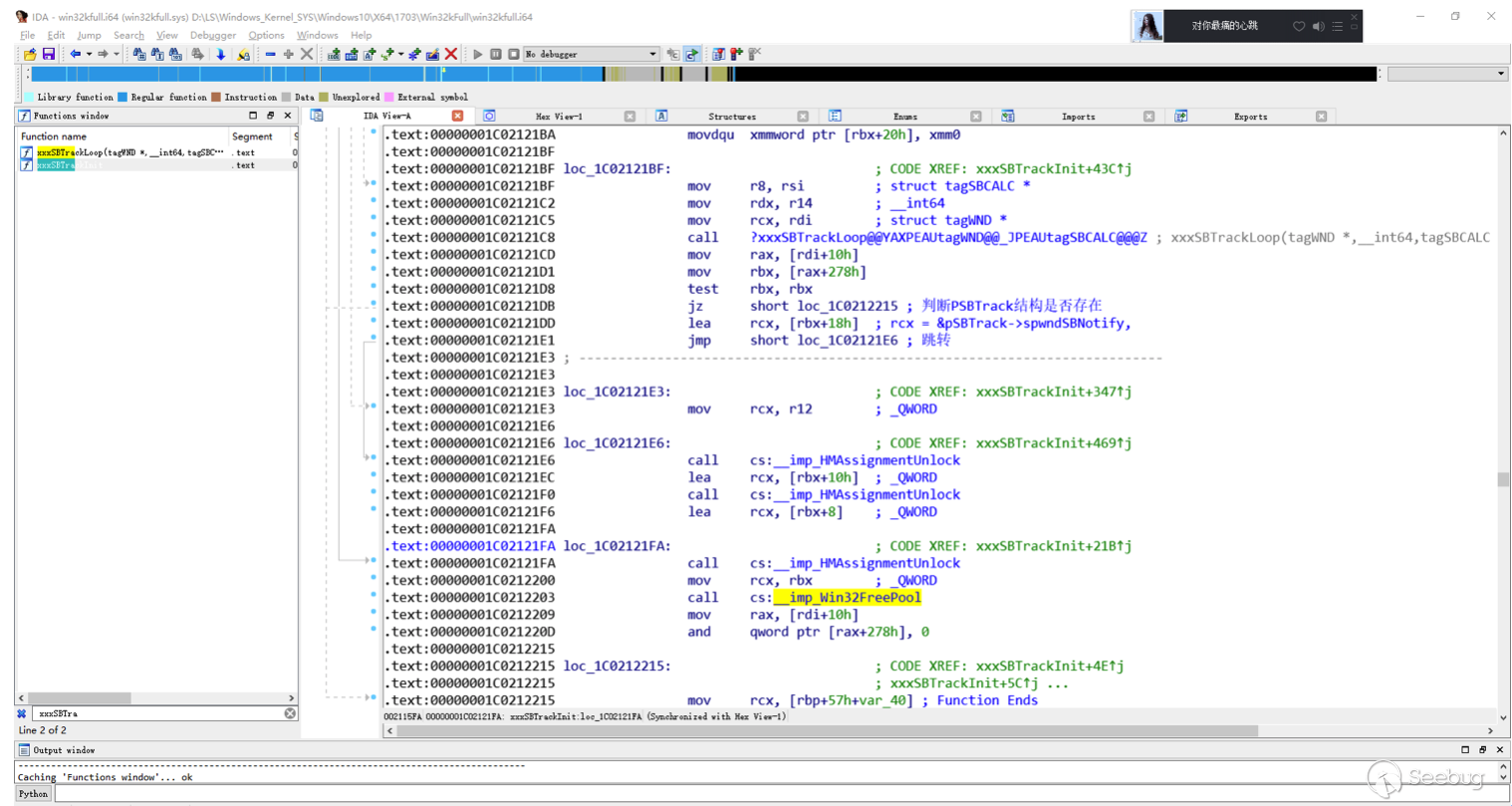 因為tagSBTrack結構已經在win32kfull!xxxEndScroll函數被釋放了,但是win32kfull!xxxSBTrackInit函數并不知道,再次釋放該內存導致Double Free!