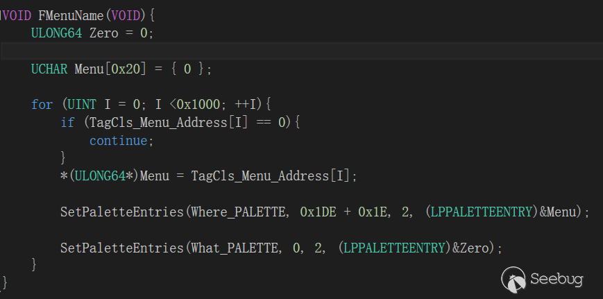 但是問題來了,即使我們確定PALETTE結構可以重引用被釋放的Pool,但是我們如何獲取到MenuName的地址呢.