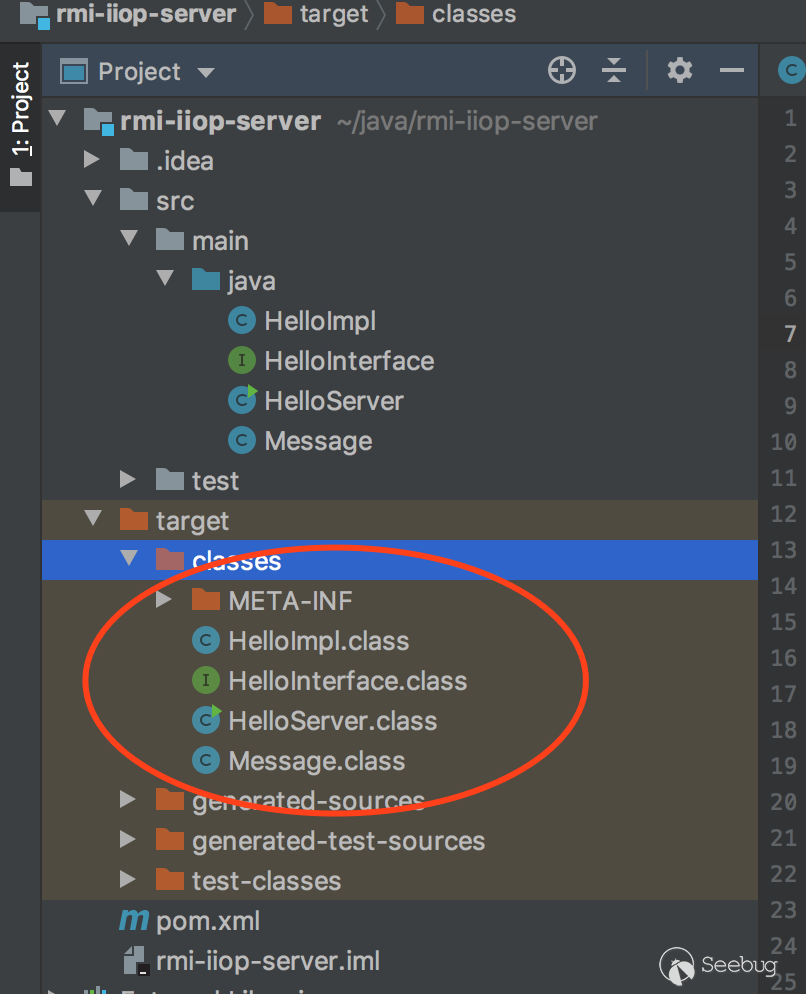 直接啟動HelloServer的main方法會在target目錄編譯好代碼
