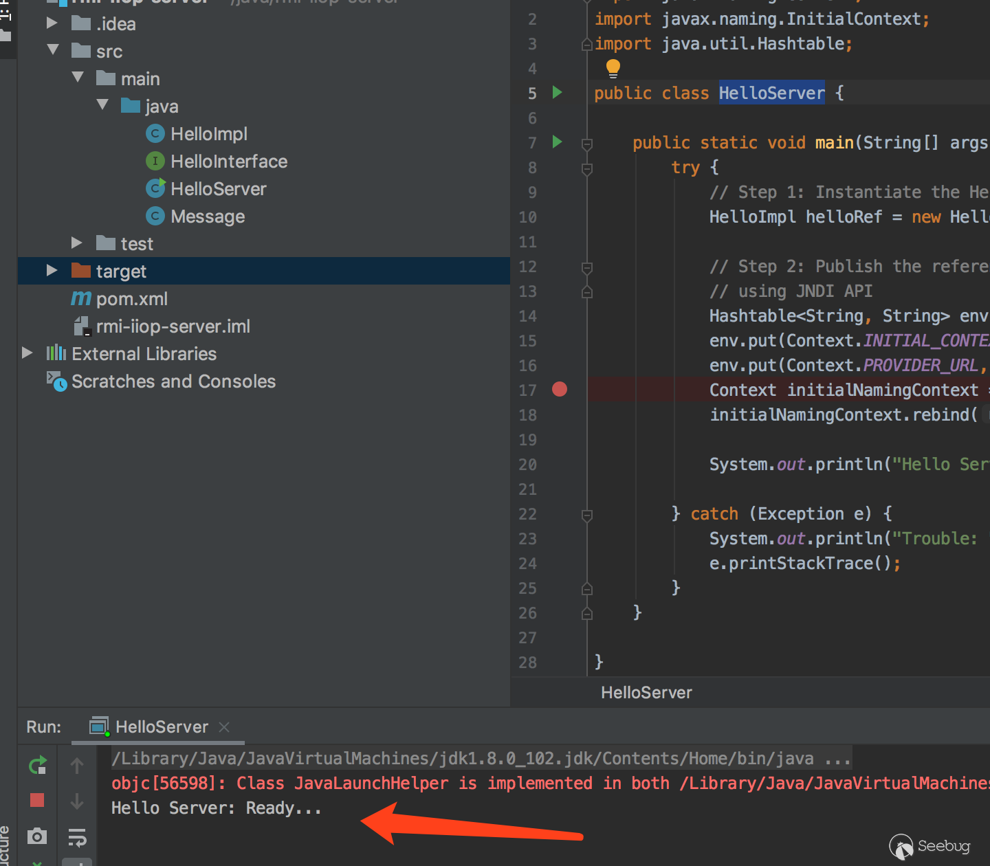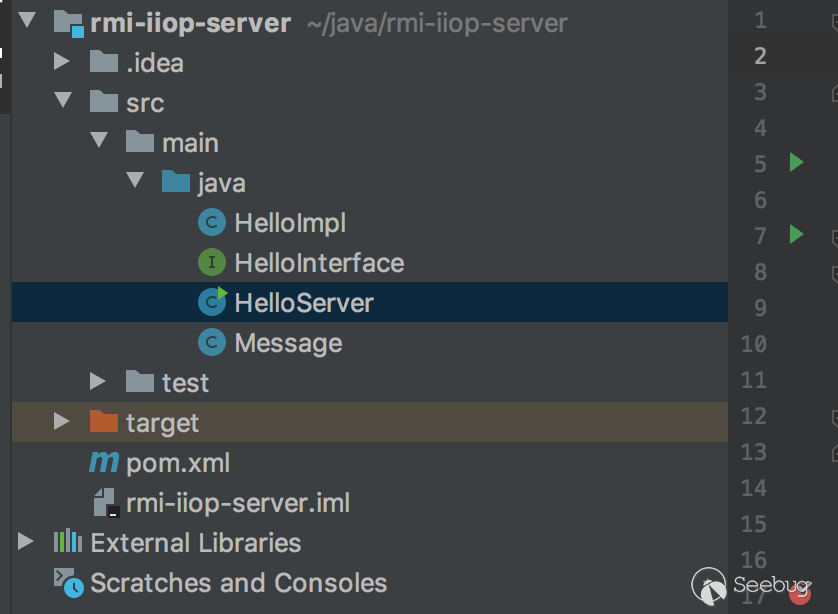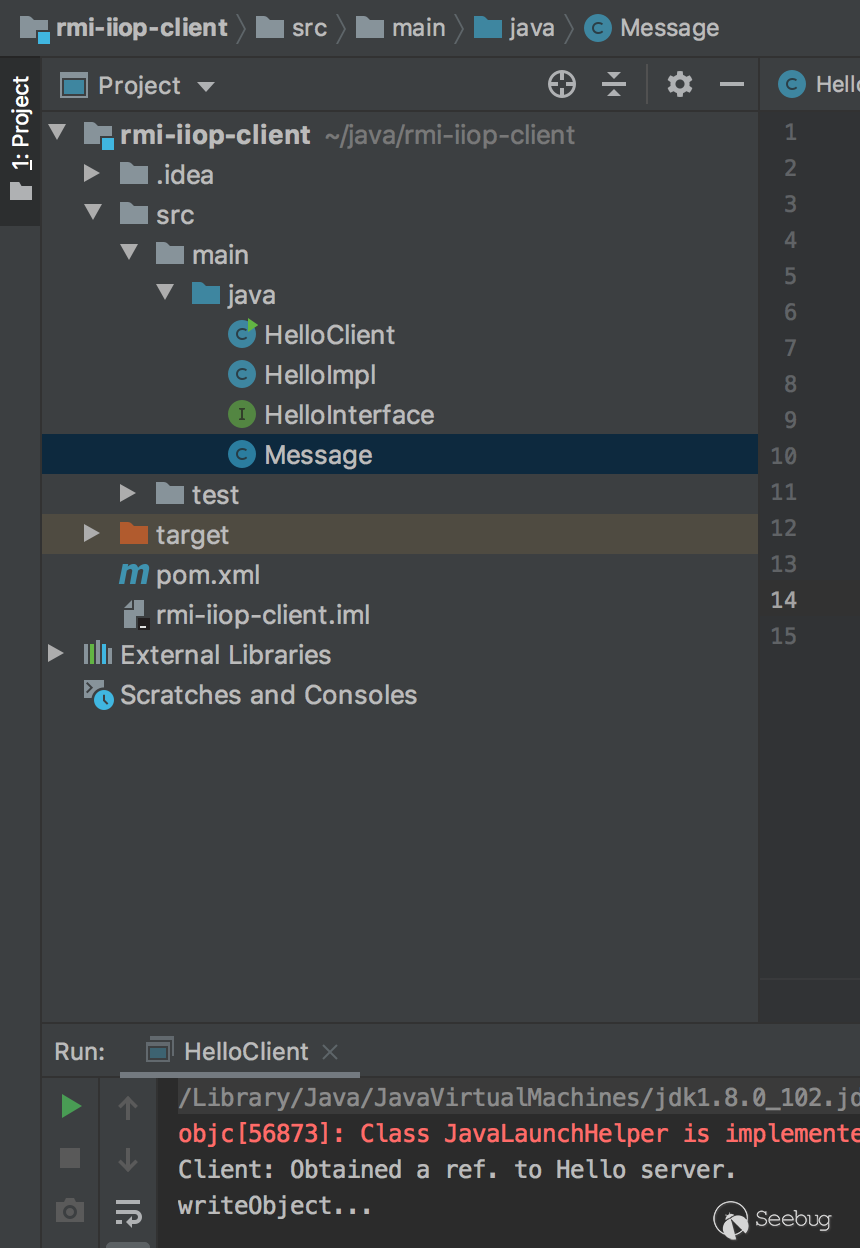 oracle官網的RMI-IIOP的例子 ,為了方便IDEA編輯器DEBUG調試我把官網例子稍改了一下,并把客戶端和服務端分開存儲。