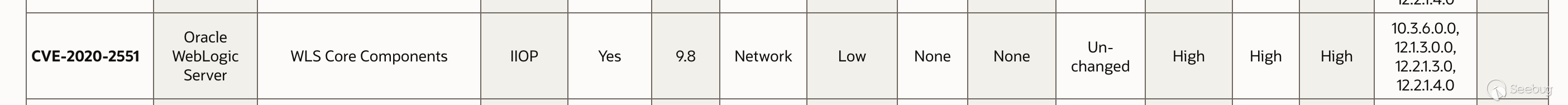 2020年1月15日,Oracle發布了一系列的安全補丁,其中Oracle WebLogic Server產品有高危漏洞,漏洞編號CVE-2020-2551,CVSS評分9.8分,漏洞利用難度低,可基于IIOP協議執行遠程代碼。