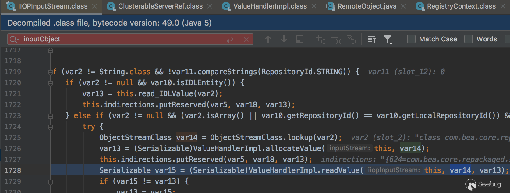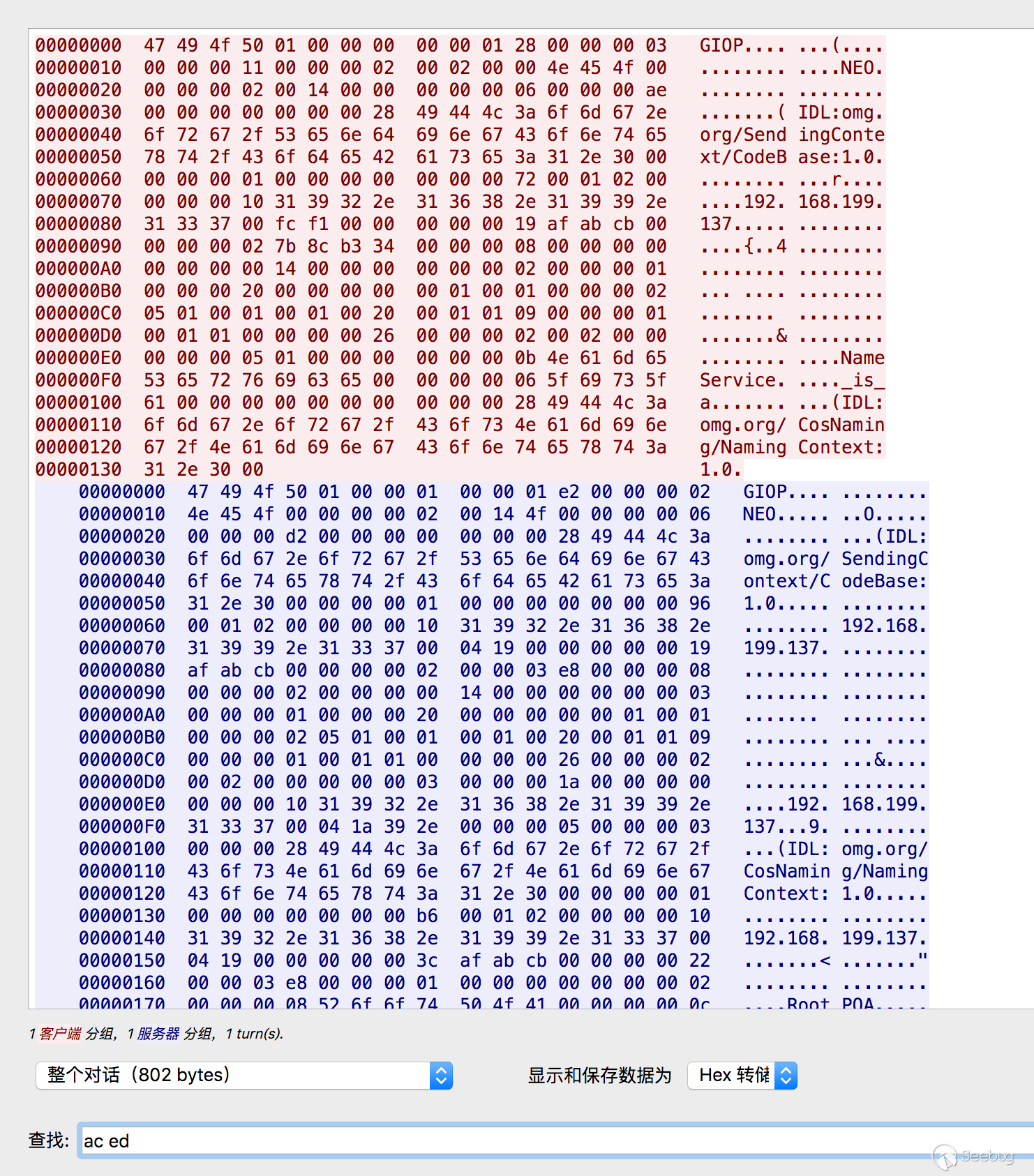 到這里就可以理解了,RMI-IIOP協議中使用IIOPOutputStream去序列化數據,字節流與ObjectOutputStream序列化數據不太一樣。