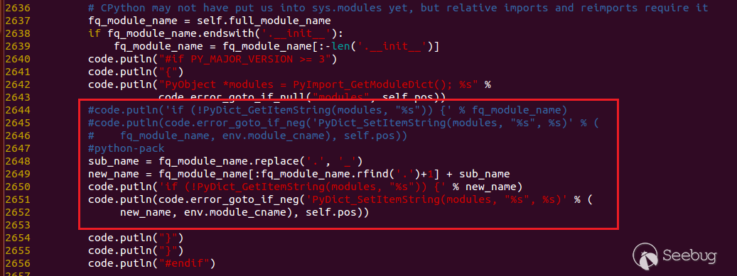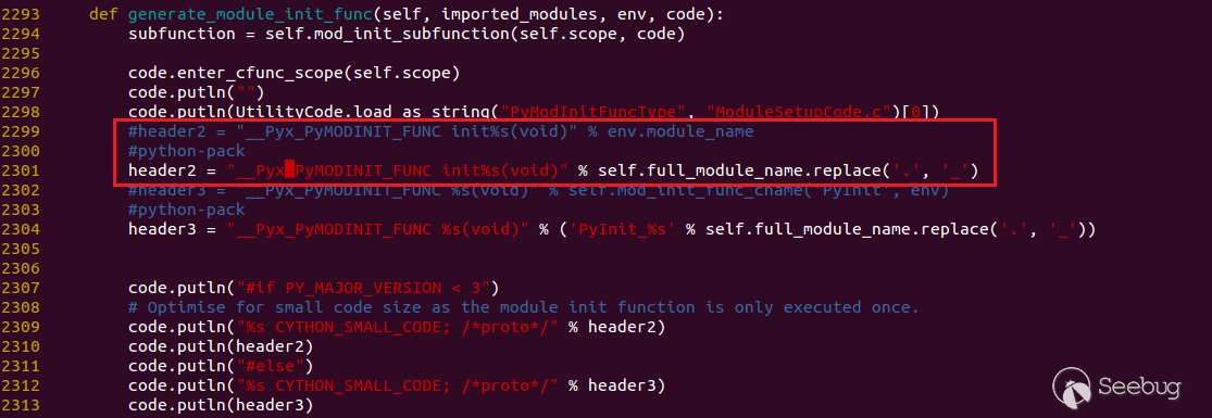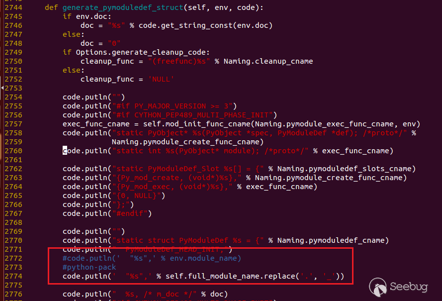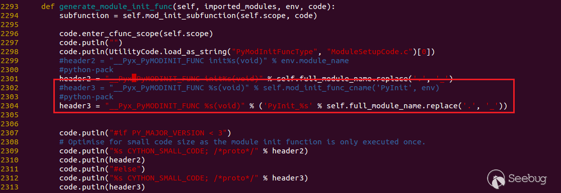 對Cython Compiler的分析,發現2.1中hello.c代碼生成部分由ModuleNode.py負責;