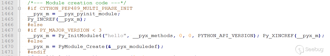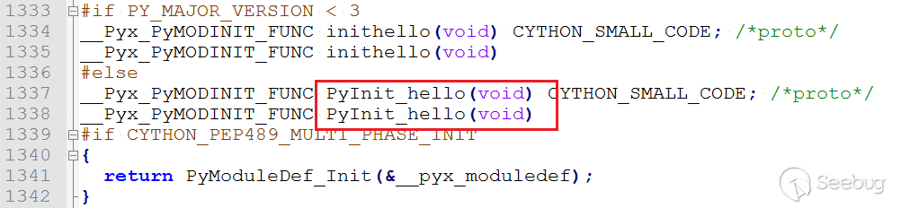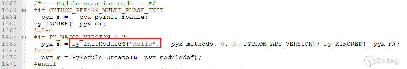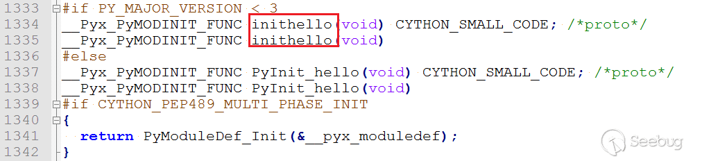 hello.c其實是C/C++ extension,首先,發現hello.c中存在initialization function: