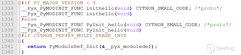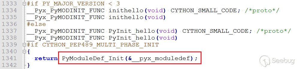 B.若python版本>=3,并且開啟了PEP489_MULTI_PHASE_INIT時,入口函數返回了PyModuleDef的對象指針;并且定義了pymod_exec函數;