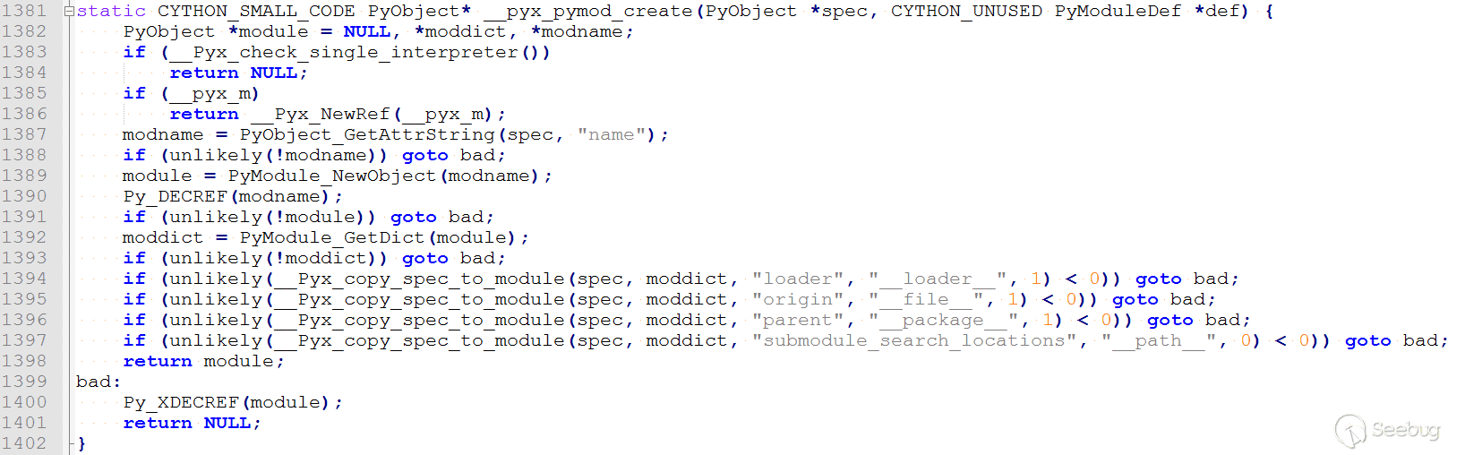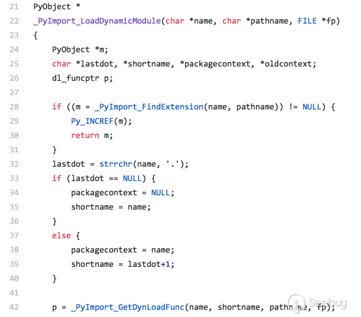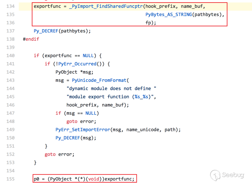 C.分析發現入口函數在import過程中被PyImport_LoadDynamicModuleWithSpec()調用:
