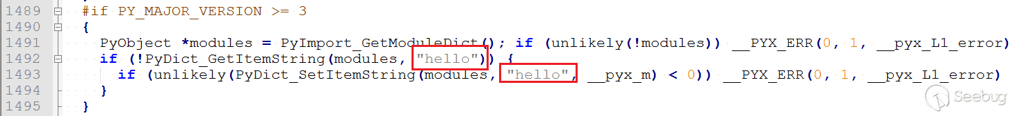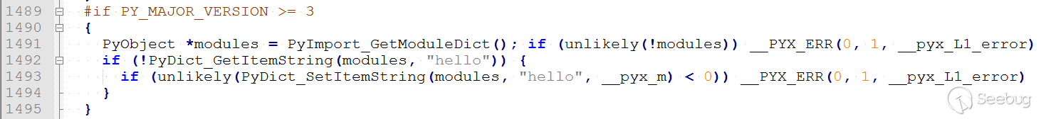 C、__pyx_pymod_exec_hello():校驗及加入sys.modules;