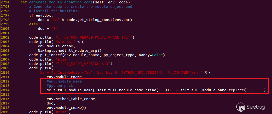 若python版本小于3,調用Py_InitModule4()生成module,第一個參數是module name;