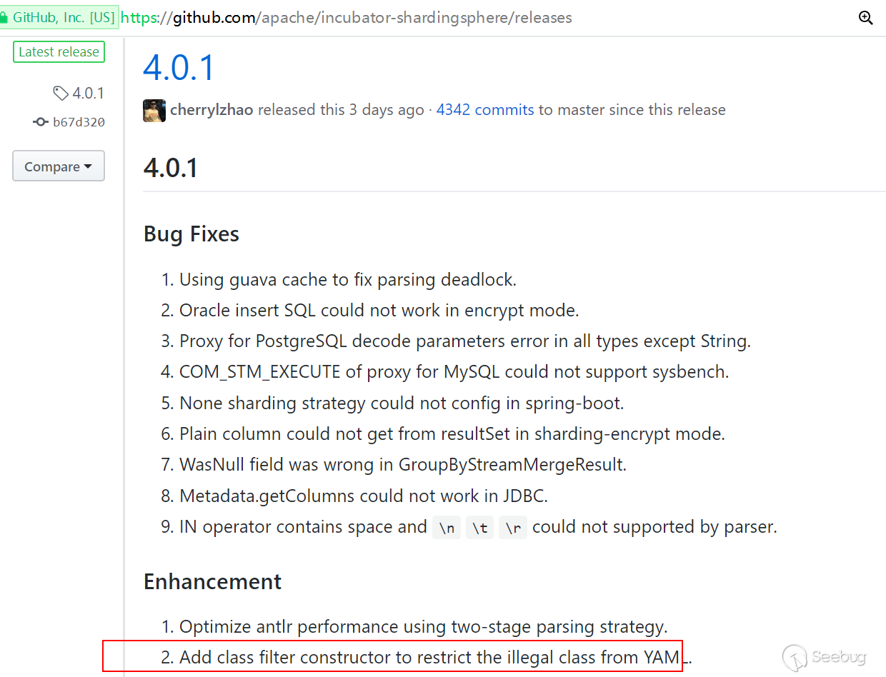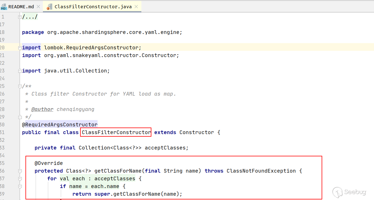 https://github.com/apache/incubator-shardingsphere/releases 通過4.0.1 版本的change-log 中的Enhancement 可以看到添加了一個類過濾器構造函數以限制來自YAML的非法類。