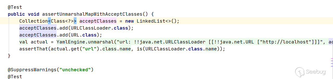 添加了一個白名單類acceptClasses列表用for each進行遍歷,其他危險的類調用將會被拒絕,如本次Poc中的調用類JdbcRowSetImpl