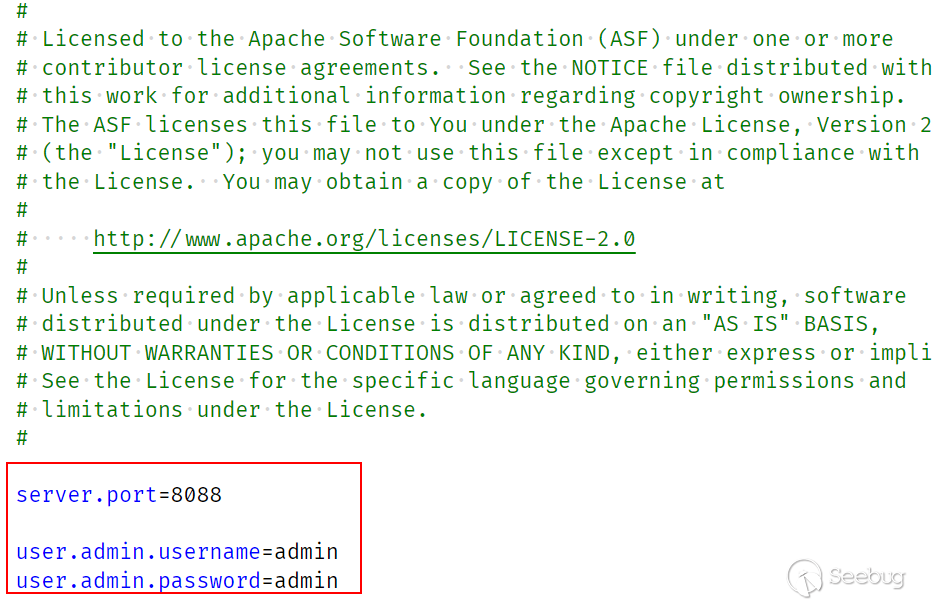 可以看到默認監聽 8088 端口,默認管理員口令為 admin/admin (生產環境建議修改密碼) 進入程序目錄運行啟動程序 bin/start.sh