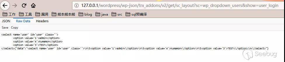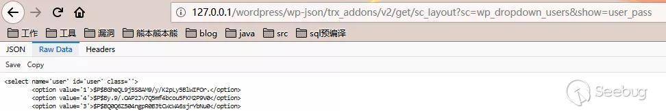 上述payload中指定show參數值為user_login,這樣可以查看wordpress所有用戶名,見下圖