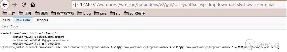show參數值可以設置為user_email來進行查看郵箱,見下圖