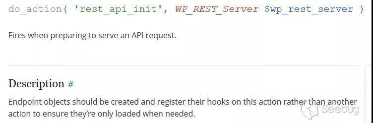 通過上圖描述不難看出: rest_api_init動作將會在API請求發送到服務器后,服務器初始化處理API請求時觸發。將trx_addons_rest_register_endpoints函數掛接到rest_api_init動作上,當有API請求發送到后臺處理時,trx_addons_rest_register_endpoints方法將會被加載。