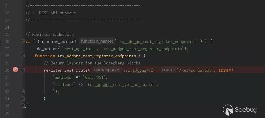 仍然是位于\wp-content\plugins\trx_addons\includes\plugin.rest-api.php文件中,有著如下代碼